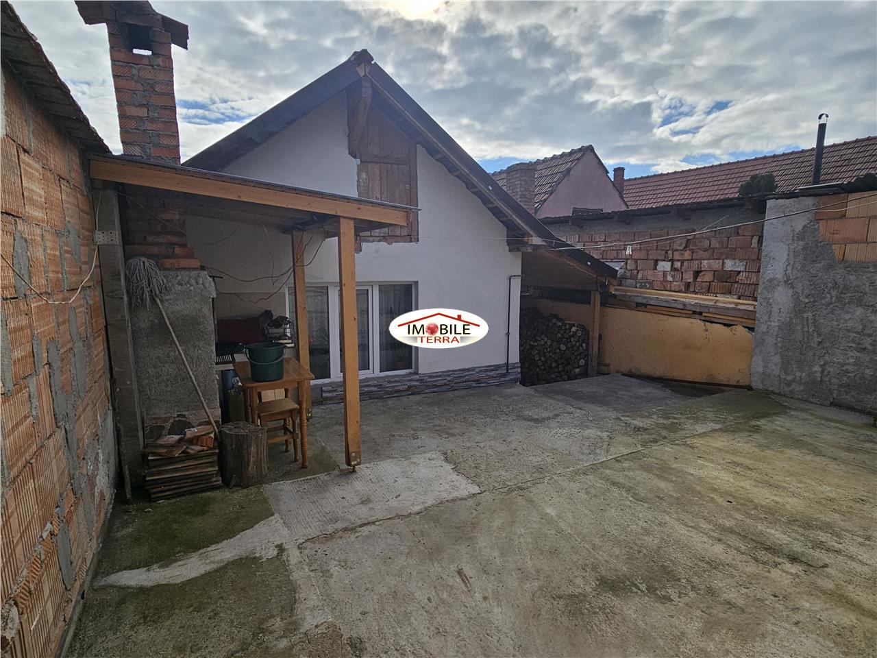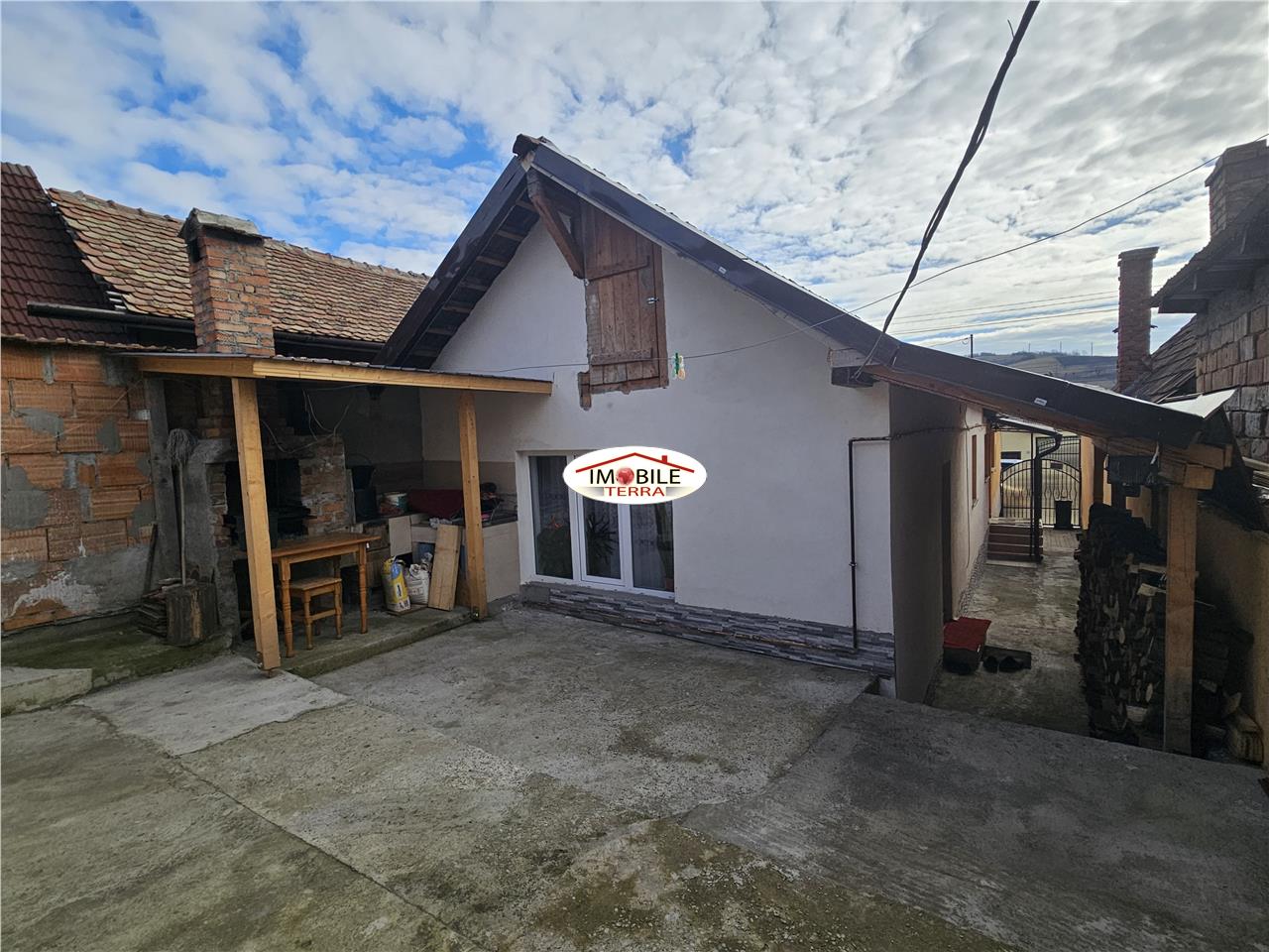 Intre ele este o curte unde este amenajat un foisor cu gratar zidit.