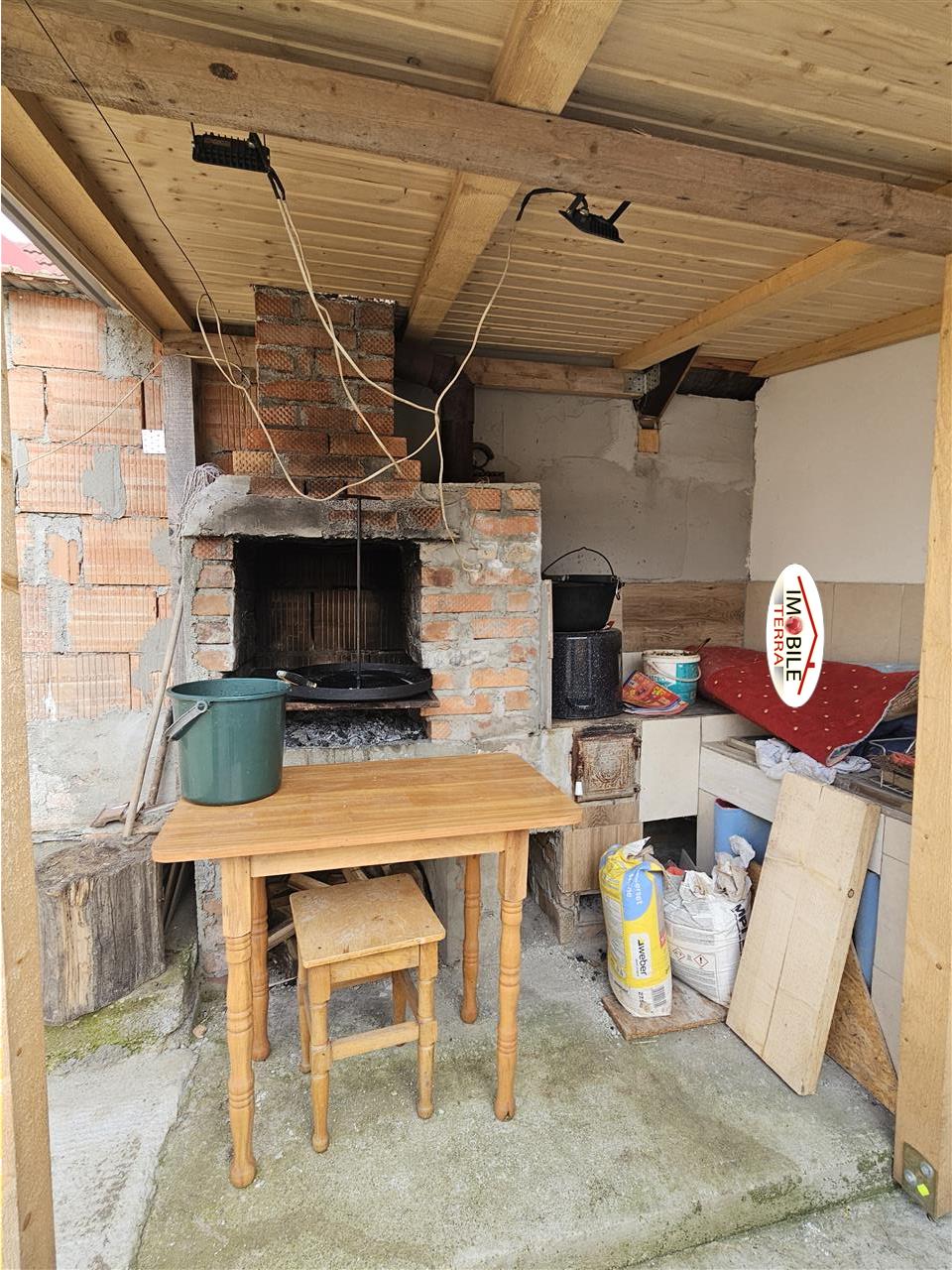 Corpul din spate este o bucatarie de vara spatioasa si baie.